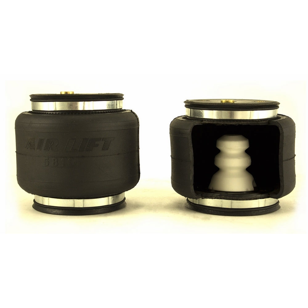 Exclusive internal jounce bumper inside, springs absorb shockUp to 5,000 pounds of load leveling capacityMaintenance free and drivers can safely run with zero air pressureEliminates harsh jarring on rough roadsAir adjustable from 5 to 100 PSILoadLifter 5000 ULTIMATE adjustable air spring kits feature all of the benefits of our heaviest rated air spring with the addition of an internal jounce bumper inside the spring for the ultimate in ride comfort. An Air Lift exclusive product! Fits vehicles with in-bed hitches. Tow and haul the heaviest loads with safety and comfort with LoadLifter 5000 ULTIMATE. Works with vehicle's leaf springs to provide up to 5,000 lbs. of front load leveling capacity and keeps the vehicle riding stable, level and comfortable whether loaded or unloaded. Fully adjustable from 5 to 100 PSI. The closed-cell urethane foam jounce bumper inside the ULTIMATE air springs provide a cushion of air that absorbs shock, eliminates harsh jarring on rough roads and protects vehicles carrying heavy loads. Never bottom out again with the ULTIMATE! LoadLifter 5000 ULTIMATE air springs are maintenance free! Safely run with zero air pressure because of the internal jounce bumper. Replaces factory jounce bumper that is sometimes removed when adding air springs. Easy to install in less than 2 hours. Includes industry-exclusive 60 Day No Questions Money Back Guarantee! Includes the most comprehensive Lifetime Warranty in the industry---covers all kit contents including brackets, fittings and air line. Air springs are built like a tire and are reinforced by durable, 2-ply fabric for maximum strength. Exclusive upper and lower roll plates included. Protect the springs from sharp edges, such as brackets or the frame. They increase load capacity up to 10%. The kit includes 2 air springs, brackets, air lines, Schrader valve and all of the hardware needed for installation. Includes fully illustrated instruction manual. Add an Air Lift on-board air compressor system to inflate and deflate air springs with the touch of a button from inside or outside of the vehicle. Air Lift is a 3rd generation family owned company that has been manufacturing the highest quality suspension products in Lansi