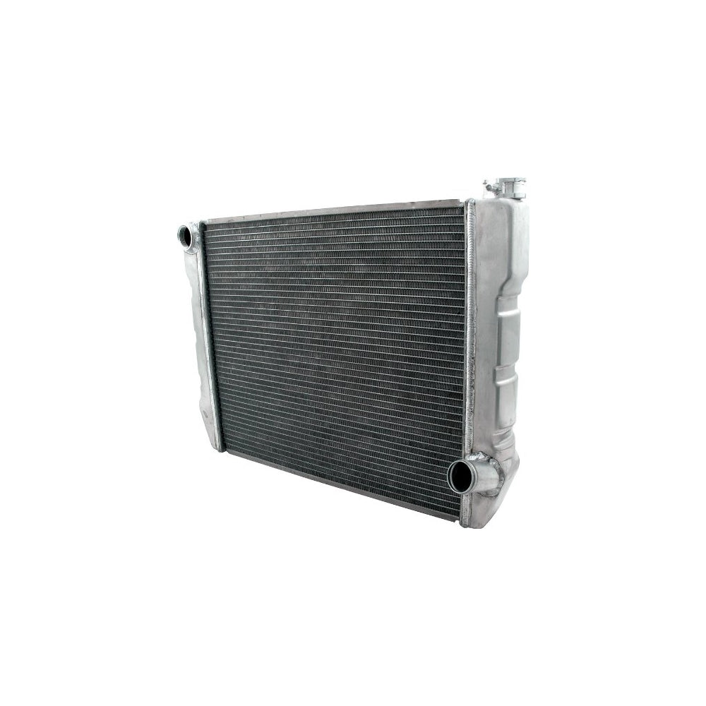 Radiator26 in W x 19 in H x 2-1/4 in DDriver Inlet/Pass OutletRadiator26 in W x 19 in H x 2-1/4 in DDriver Inlet/Pass OutletAluminumNaturalUniversalEachTriple pass radiators circulate coolant across the top portion of the radiator, back across the mid-section and through the bottom allowing maximum heat dissipation. These radiators offer the same features as standard Allstar aluminum radiators including furnace brazed tanks, two rows of 1" tubes, billet machined filler neck with overflow, standard 1-3/4" outlet and a universal inlet designed to accept 1-1/2" standard hose, -16 or -20AN fittings (sold separately). Available in 24", 26", 28" and 31" overall widths (including tanks).