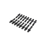 Manufactured to high tolerances so they run-in straight and true, and the extra-large radius base offers greater resistance to flexLengths are exact, designed to provide positive seating every timeMade from premium grade 8740 chrome moly steel and heat-treated to a tensile strength of 200,000 psi; designed for competition applicationsStud dimensions are: 2.000 overall stud height, .1.3, .820 screw-in thread depth, 1.000 adjuster thread depth, 7/16-20 shank diameter and thread, and 7/16-14 base diameter and threadDesigned for use with ARP's patented Perma-Loc adjusters, not OEM-style self-locking nutsIf you have ever installed a rocker stud into a cylinder head and watched it wobble as it screwed in, you knew from the beginning that the rocker geometry was going to be inconsistent all over the place. The solution ARP quality. ARP rocker studs are concentric within .005 T.I.R. thread pitch to thread pitch. They run-in straight and true, and the extra-large radius base offers greater resistance to flex. Lengths are exact -- designed to provide positive seating every time. These Pro series rocker arm studs are from premium grade 8740 chrome moly steel and heat-treated to a tensile strength of 200,000 psi. ARP's patented Perma-Loc adjusters (available separately) should be used, not OEM-style self-locking nuts. It is highly advisable to determine what the optimum rocker arm stud length is for your particular application. This is especially true when "long" pushrods and valves are employed -- you should raise the "installed height" of the rocker arm to compensate for the longer-than-stock components. The dimensions for these studs are: 2.000 overall stud height, .1.3, .820 screw-in thread depth, 1.000 adjuster thread depth, 7/16-20 shank diameter and thread, and 7/16-14 base diameter and thread.