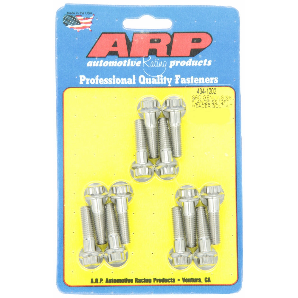 Brand ARP Model 434-1202 Description: SBC/GENIII LS 3/8 flange SS 12pt header bolt kit Pkg: kit Pkg Type: skin Material_1: Stainless Steel Finish_1: Polished Material_2: N/A Finish_2: N/A Origin: USA Category: Cylinder Head Product Line: Header Kit Type: BoltARP 434-1202 Stainless Steel Header Bolt Kit