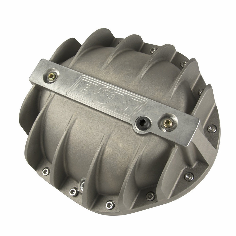• B&M Cast Aluminum Differential Covers are designed to strengthen the differential by preventing case distortion and ring gear & bearing cap deflection. Constructed of A356.0-T6 aluminum, these rugged covers significantly increase the fluid capacity and dissipate heat much faster than the stock factory unit to prolong the life of your ring and pinion gears. Additional features include an engraved B&M logo, drain and fill port locations, a magnetic drain plug for catching ferrous metal particles, and complete hardware and installation instructions.