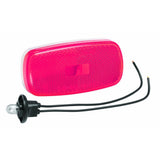 This light has a rugged ABS base and acrylic snap-on reflex lensThe molded socket protects bulb from road shock and has two wires to eliminate surface groundThe molded grommet extends through the skin to protect the wiring4 inches X 2 inches X 1-1/32 inches with 5/8 inches depthThis is a 59 series red clearance/side marker light with reflex lens, colonial white base, and two wires to eliminate surface ground. This light has a rugged ABS base and acrylic snap-on reflex lens. This molded grommet extends through the skin to protect the wiring.