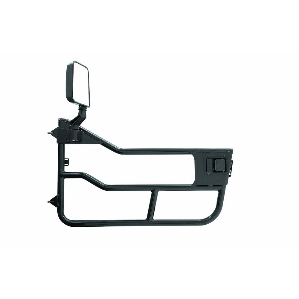 Brand Bestop Model 51809-01 Color Black MIRROR NOT INCLUDEDHeavy duty 1-1/4 inch tubular steel construction with powder-coat finishNo-drill door-hinge mounting for easy installation or removalPaddle handle closure latches on existing factory door strikerRestraining straps help prevent door from swinging forward onto vehicle's sideBestop HighRock 4x4 Element Door Set features tubular...