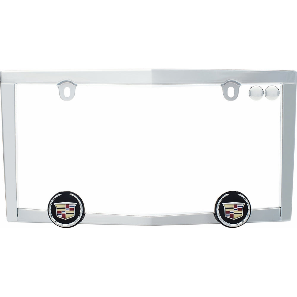 This hand polished chrome plated frame features the Cadillac crest emblem on pivoting fastener caps and for a completed lookDurable zinc die cast metal frame is chrome plated, hand polished with two (2) chrome plated fastener capsDesigned to fit all standard 6x12 inch novelty/license platesIncludes two (2) Cadillac crest pivoting fastener caps with two (2) chrome fastener caps with plastic cap retainersUser friendly and easy to install, see back of package for installation instructionsFor the Cadillac lover in you! This hand polished chrome plated frame features the Cadillac crest emblem on pivoting fastener caps and for a completed look two (2) chrome fastener caps. Cruiser Accessories is a family owned business that has been manufacturing and selling license plate frames for over 30 years. Through innovation, attention to detail and many patented designs, Cruiser has evolved into the largest supplier of license plate frames, novelty plate shields and mounting hardware in the automotive aftermarket. Cruiser's product line also includes both standard and exclusive Star Pin locking hardware, designer fastener caps, mounting accessories, motorcycle frames and 3d-Cals decals. Let Cruiser Accessories complete your ride's look today!