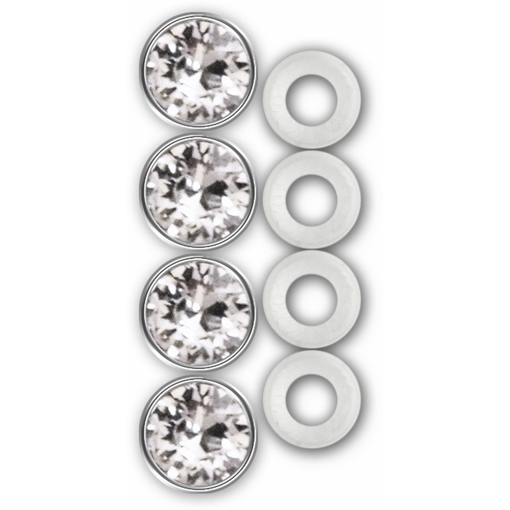 Put the final touch on a novelty/license frame with a set of Diamond Bling fastener caps with brilliantly cut clear faceted glass stonesEliminates the visibility of the fastener and completes the look of the license plateFastener caps are glass and chrome plated plastic and designed to fit all novelty/license platesIncludes four (4) fastener caps with plastic cap retainersUser friendly and easy to install, see back of package for installation instructionsPut the final touch on a novelty/license frame with a set of Diamond Bling fastener caps. Cruiser Accessories is a family owned business that has been manufacturing and selling license plate frames for over 30 years. Through innovation, attention to detail and many patented designs, Cruiser has evolved into the largest supplier of license plate frames, novelty plate shields and mounting hardware in the automotive aftermarket. Cruiser's product line also includes both standard and exclusive Star Pin locking hardware, designer fastener caps, mounting accessories, motorcycle frames and 3d-Cals decals. Let Cruiser Accessories complete your ride's look today!