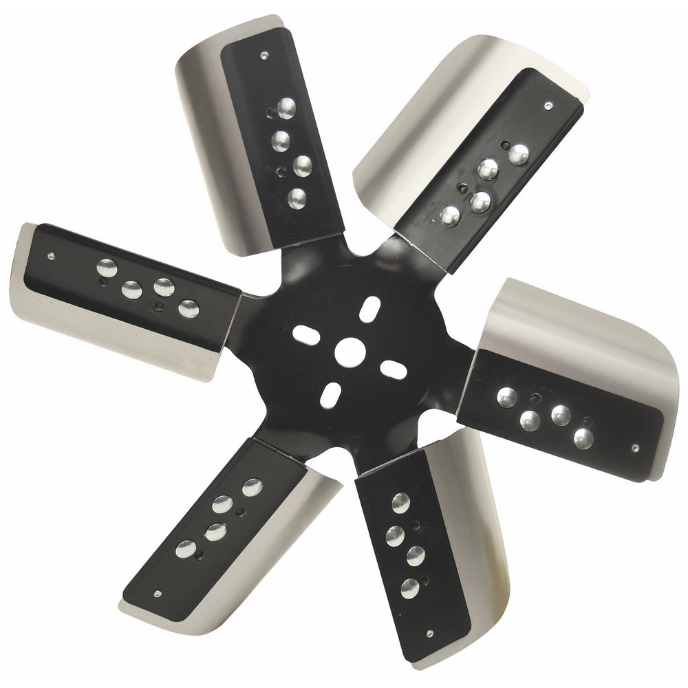 • Rated up to 10,000 rpm, this 15 inch diameter heavy duty standard rotation fan features thick black steel hubs and 6 stainless reinforced blades with a large surface area that improve performance and fuel economy.
