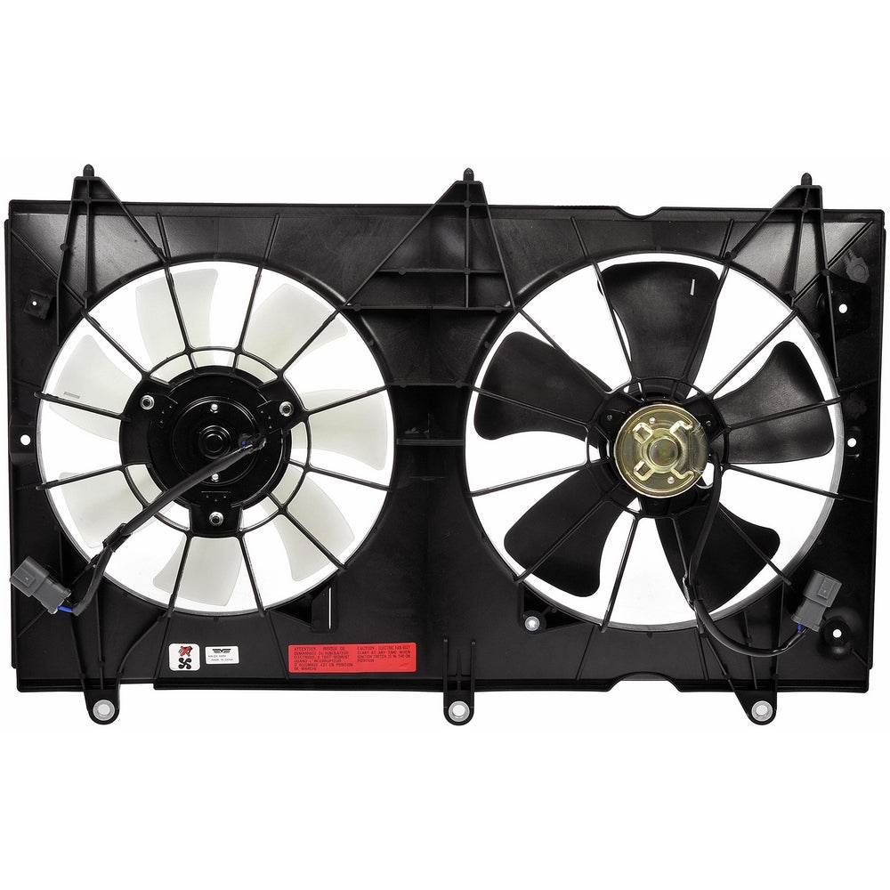 Durable construction: high fiberglass content offers extra strength and rigidity while improving thermal stabilityPlug and Play jumper harnesses included (where applicable)Direct replacement for a proper fit every timeAll motors are tested prior to final production of radiator fan assemblySave time, money and labor with Dorman's Engine Cooling Fan Assembly. It comes ready to install with the motor, shroud, and blade. Plus, our high quality engineering ensures optimal air flow and strength to prevent your vehicle from overheating.