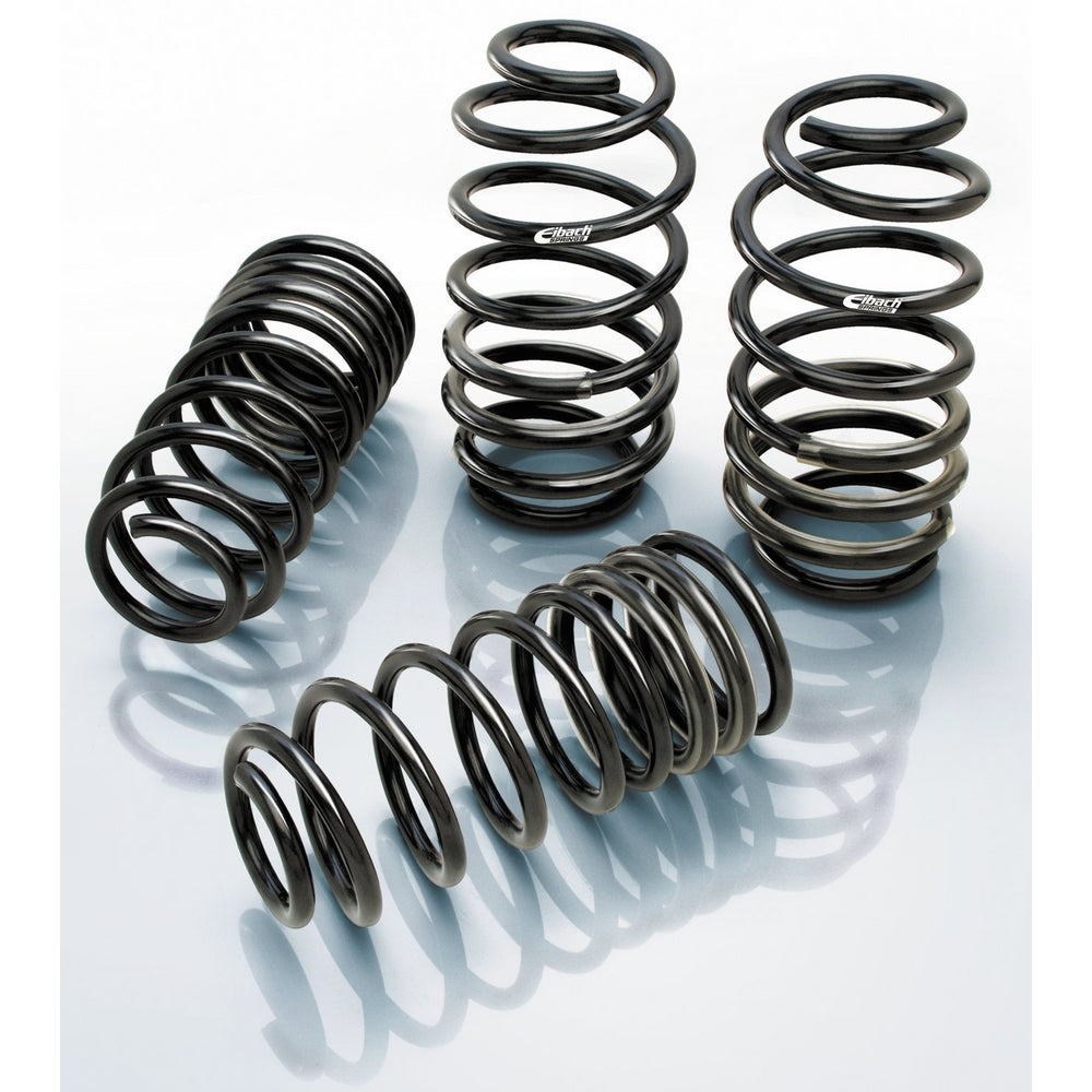 High performance handling and aggressive good looksLowers center of gravityLowers vehicle 1.0 inch - 1.5 inchStop quicker, corner faster and get better MPGProgressive spring design for excellent ride qualityThe Eibach Pro-Kit is the perfect answer for most frequently-driven street cars. It is the legendary spring system of Eibach that dramatically improves both the performance and appearance of the vehicle. Pro-Kit lowers center of gravity of your car, reducing squat during acceleration, body roll in corners and excessive nose-dive under braking. When combined with Plus-1 or Plus-2 wheels and tires, the Eibach Pro-Kit is the finishing touch to a winning recipe for performance. Pro-Kit also reduces excessive fender-well clearance, making your car look just as hot as it performs. Every Eibach Pro-Kit is designed and tested by the suspension engineers of Eibach and performance driving professionals, to deliver aggressive good looks and high performance handling, without ever compromising safety or ride quality. By using the proprietary of Eibach, progressive spring design, Pro-Kit provides the ultimate balance to take your passion for driving to a whole new level.