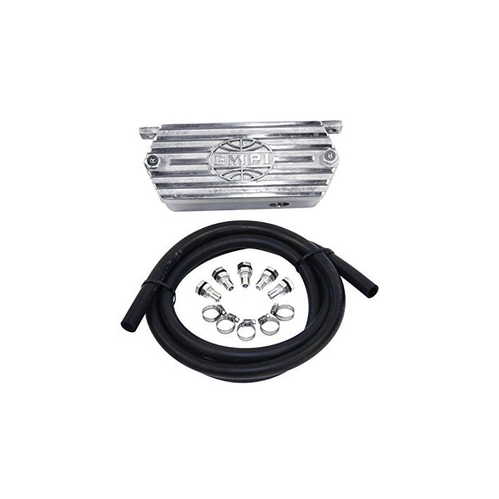• If you value your engine then the bugpack breather system is a must. It is designed to relieve engine crankcase pressure without spillage or loss of oil from the system EMPI's complete engine VW oil breather kit is made from cast aluminum and helps reduce crankcase pressure eliminate blow-by and oil loss. High revving modified engines require more crankcase ventilation than the stock breather can supply. With the aluminum oil breather kit the blow-by oil is collected in the foam filter and the air vapors are vented to the atmosphere. The kit includes heavy duty breather hose plus internal baffles that include a screen mesh shelf to elevate the foam filter element. The breather box kit includes 8 feet of 1/2 oil hose 5 vent fittings and 5 hose clamps. CAST ALUMINUM BREATHER SYSTEM