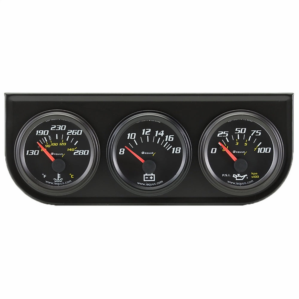 Has2-in diameter dial face with black finishVolts range from 8-18 volts and water temperature from130-280 degrees F or 60-140 degrees CBack-lit illumination for night useCan be connected to dash light for dimmer controlIncludes adaptors for installation on most popular foreign and domestic vehiclesThis compact triple gauge kit comes with a 2-in diameter dial face. It has a bourdon tube meter movement for accuracy and durability and has a back-lit illumination for night viewing. It has a volt range from 8 to 18-volts and a water temperature range from 130 to 280-degrees Fahrenheit. It can also be connected to the dash light for dimmer control. It includes adaptors for installation on most popular vehicles, both foreign and domestic and it comes with complete illustrated instructions in English, French, and Spanish.