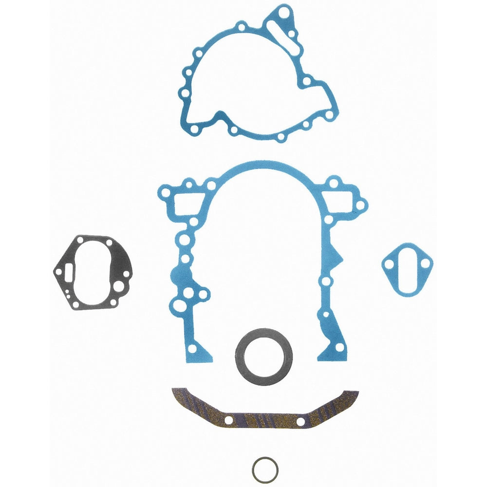 Ideal for stock replacement useDesigned to meet original manufacture equipment specificationsGasket material is blue stripe cork and rubber construction1 year manufacturers warrantyThis Fel-Pro timing cover gasket set is designed to meet original manufacture equipment specifications. Gasket is ideal for stock replacement use, material is blue stripe cork and rubber construction. One year manufactures warranty.