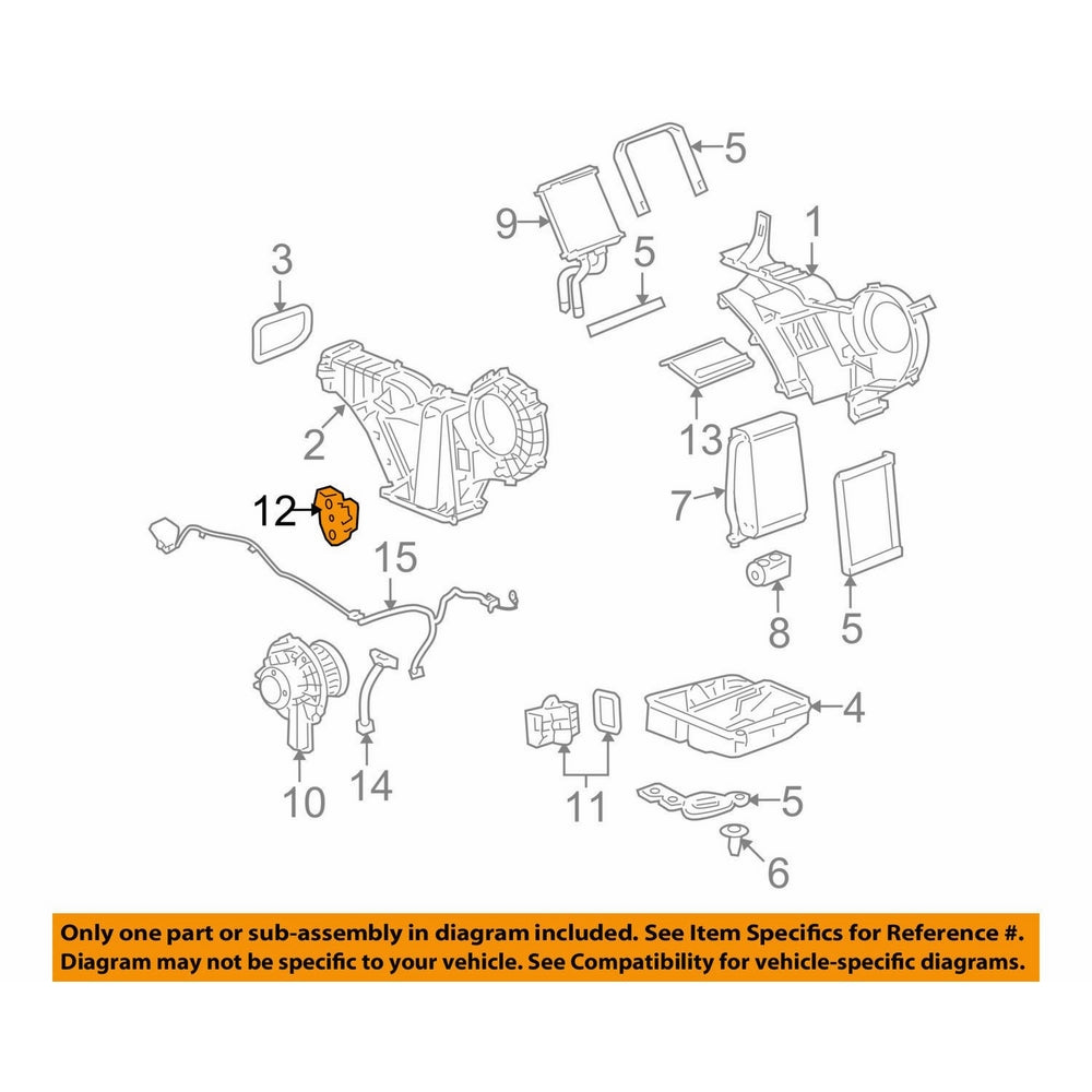 Quantity Needed: 1 Item Specifics: Item Name: ActuatorCategory 1: HvacCategory 2: Air Conditioner & HeaterCategory 3: Auxiliary Ac & Heater UnitPart Ref# on Diagram: ONLY PART REFERENCE #12 ON THE DIAGRAM IS INCLUDEDOther Part Number: 16164972 See Item Specifics section for additional specifications about this part. Vehicle Fitment Summary To confirm that this part fits your vehicle, enter your vehicle's Year, Make, Model, Trim and Engine in the Compatibility Table. Also review the notes section in the compatibility chart for additional specifications about this part. This part generally fits Buick, Cadillac, Chevrolet, GMC, Oldsmobile, Pontiac vehicles and includes models such as Aurora, Bonneville, Bravada, Envoy, Envoy XL, Envoy XUV, Escalade, Escalade ESV, LeSabre, Park Avenue, Rainier, Seville, SSR, Suburban 1500, Suburban 2500, Tahoe, Trailblazer, Trailblazer EXT, Yukon, Yukon XL 1500, Yukon XL 2500 with the trims of A Sport Utility 4-Door, B Sport Utility 4-Door, Base Convertible 2-Door, Base Sedan 4-Door, Base Sport Utility 4-Door, Custom Sedan 4-Door, CXL Plus Sport Utility 4-Door, CXL Sport Utility 4-Door, Denali Sport Utility 4-Door, EXT B Sport Utility 4-Door, EXT Sport Utility 4-Door, GXP Sedan 4-Door, Limited Sedan 4-Door, Limited Sport Utility 4-Door, LS Sport Utility 4-Door, LT Sport Utility 4-Door, LTZ Sport Utility 4-Door, Luxury Sport Utility 4-Door, North Face Sport Utility 4-Door, Platinum Sport Utility 4-Door, Premium Sport Utility 4-Door, Q Sport Utility 4-Door, R Sport Utility 4-Door, SE Sedan 4-Door, SL Sport Utility 4-Door, SLE Sedan 4-Door, SLE Sport Utility 4-Door, SLS Sedan 4-Door, SLT Sport Utility 4-Door, Special Edition Sport Utility 4-Door, SSEi Sedan 4-Door, STS Sedan 4-Door, Ultra Sedan 4-Door, Z71 Sport Utility 4-Door . The engine types may include 3.5L 214Cu. In. V6 GAS DOHC Naturally Aspirated, 3.8L 3800 Exported By ExportYourStore