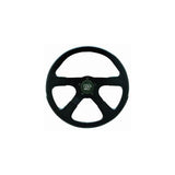 14" Diameter wheel with 3 3/4" dishMolded cushion grip contoured to the shape of the hand with a leather grained finishBlack anodized aluminum spokesIncludes horn button and black Styling SleeveGrant installation kit requiredPatterned after the most popular rally car look. This is a solid 4 spoke design. Molded cushion grip contoured to the shape of the hand with a leather grained finish. This is a great affordable solution for a wheel with incredible styling. A Grant Installation Kit is necessary to mount this wheel to a vehicle. This wheel will work with Grant Standard 3000 or 4000 Series, Billet 5000 Series, or Euro 6000 Series Installation Kits.