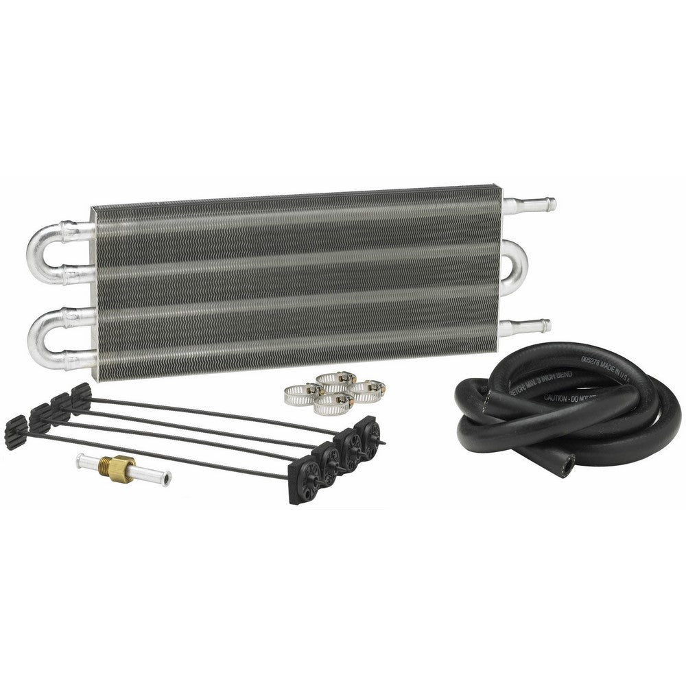 ULTRA COOL TRANSMISSION OIL COOLER, UNIVERSAL -- 3/4" Thick, 5" Height, 15 7/8" Length, 3/8" Push-on Fitting Size, Ideal For Vehicles Up To Full Size, Towing Up To 2500 Lbs., Effective And Economical Way To Keep The Transmission At Its Optimal Operating Temperature, High Efficiency Turbulators In Each Tube Direct The Fluid For Superior Heat Transfer