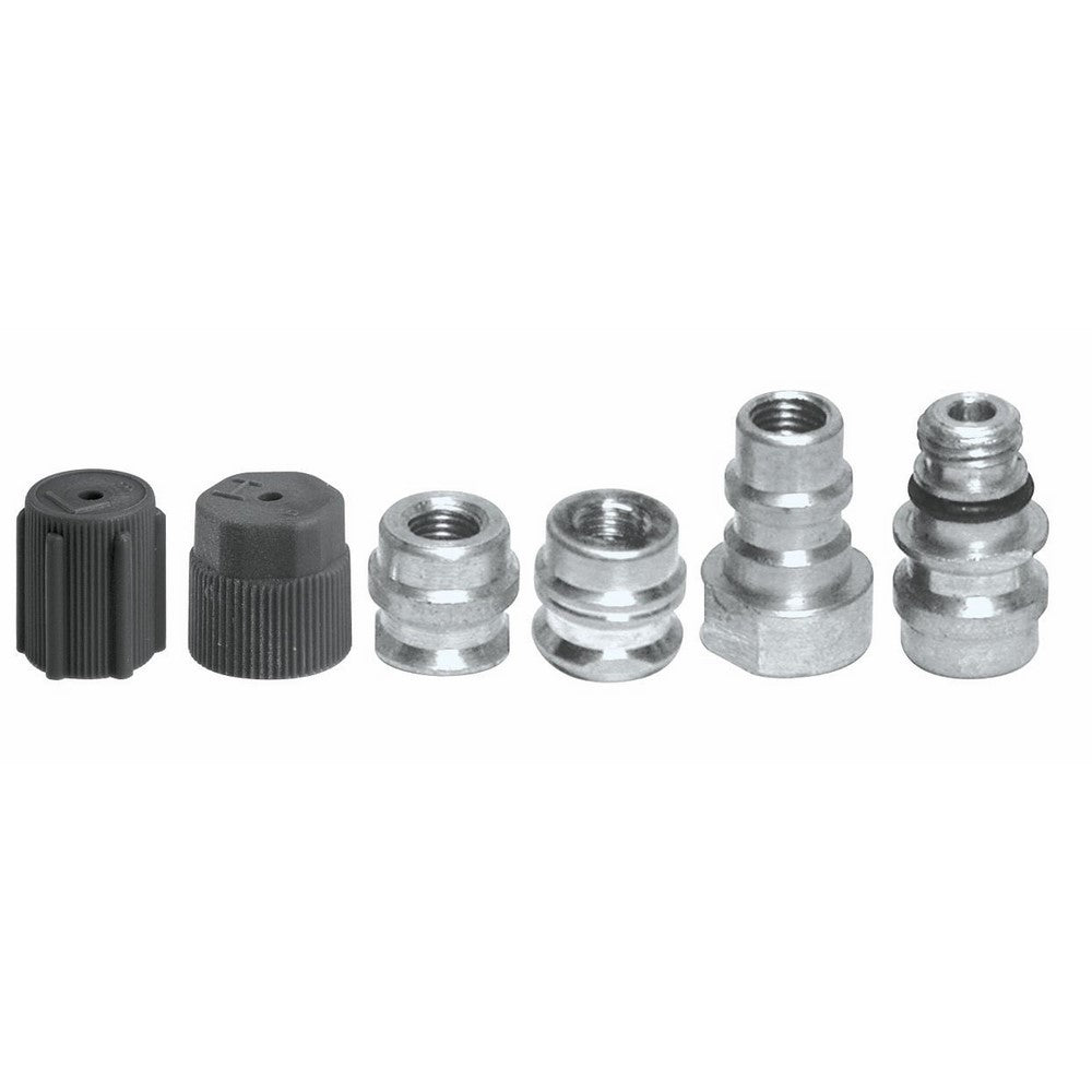 Complete automotive air conditioning conversion adapter kit with 4 adaptersIncludes one low-side 7/16 inch port, one high-side 3/8 inch port, one high-side for 2-Piece GM port, one high-side 7/16 inch portFits all cars all yearsFor conversion of R12 to R134aIncludes retrofit label›