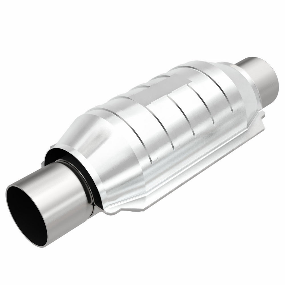 Stainless steel constructionFederal emissions compliant designFormulated for gas and diesel applicationsSeam welded close to the converter body for a strong, tight bondMade in U.S.A.MagnaFlow universal catalytic converters form the basic building blocks for a comprehensive line of direct-fit applications. The main benefit of the universal catalytic converter is that one unit may cover a wide variety of vehicle makes and models. Installing universal converters often requires the use of welding, cutting and tube bending equipment that is readily available to most professional installers. All federal catalytic converters meet EPA requirements. Federal catalytic converters are not legal for sale, installation or use on vehicles registered in the state of California.