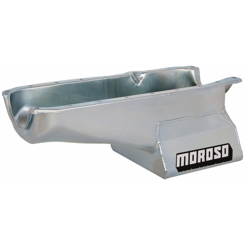 Brand Moroso Model 20205 Moroso Oil Pan8.25 inch Oil Pan for Chevy Small-Block Engines with Passenger-Side Dipstick features a kicked out sump oil pan. It blocks with 1 piece. It has a rear main seal and a passenger side dipstick. It is a 7 quart and has a trapdoor baffling....