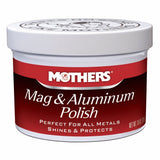 Apply with a clean cloth and a little elbow grease for a shineGentle enough to use on a regular basisRegular use provides a long lasting benefit to your vehicleEasy to applyMothers Mag and Aluminum Polish - 10 ounce features the legendary metal polish. Mothers secret formula balances a brilliant shine with ease-of-use for aluminum wheels and parts, brass, alloys and accessories. The application is just a matter of a clean cloth and a little elbow grease. The mag and aluminum polish is strong enough to put a shine to the most neglected metals and gentle enough to use on a regular basis.