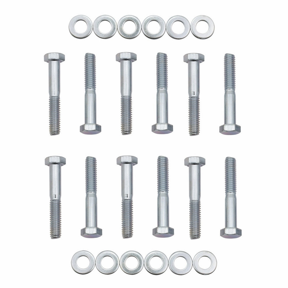 • Mr. Gasket Ford Intake Manifold Bolts are heat-treated to Grade 5 specs and zinc-plated to resist rust and corrosion. Designed specifically for small-block Fords, these durable 2.00-inch-long 5/16-18 bolts are a perfect fit for tight spaces, have extra-thick parallel-ground flat washers for a smooth, consistent torque, and come in a set of 12.