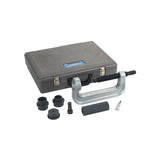 • The "Wheel Stud Service Kit" is a mechanical tool that removes and installs wheel studs by pushing on the head of the wheel stud, eliminating the need for threaded adapters. This reduces the number of adapters required, minimizes the risk of damage to studs, and increases the ease of use for technicians. It is all done without removing the hub from the vehicle. The "Wheel Stud Service Kit" can remove and install up to 10 studs in 10 to 15 minutes in about half the time required for more expensive, competitive systems. This time saving kit translates directly into increased productivity and more revenue for the shop.