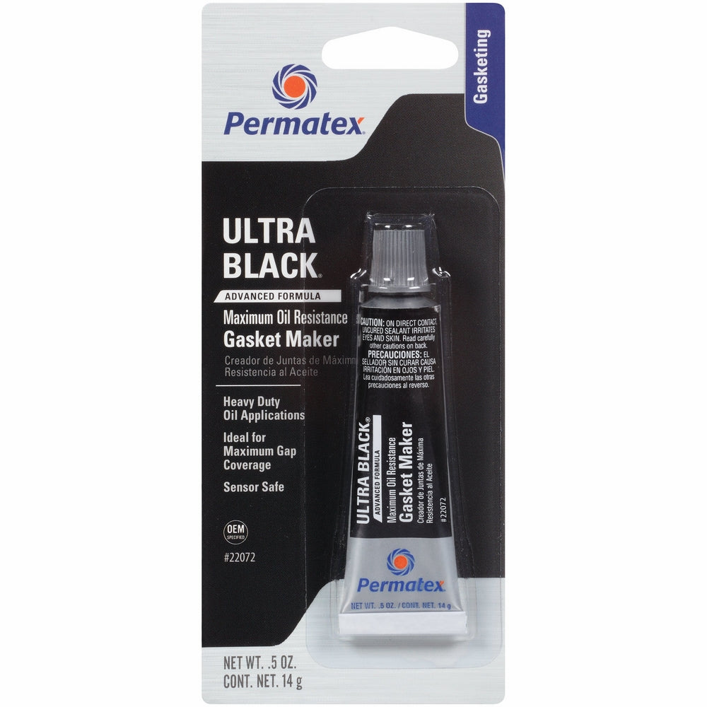 • Permatex Ultra Black Maximum Oil Resistance RTV Silicone Gasket Maker is a fast-curing, sensor safe, low odor, non-corrosive formula that retains high flexibility, and oil resistance properties through use of a patented adhesion system. This gasket maker meets performance specs of OE silicone gaskets and is OEM specified. For dealership warranty requirements it also ensures extended drivetrain warranty compliance. Temperature range -65 degrees fahrenheit to 500 degrees fahrenheit intermittent; resists auto and shop fluids and vibration. These gasket makers offer significant performance advantages, excellent torque retention and hi-temp, sensor-safe properties. Extended warranties, engine sensors and new component materials such as aluminum, bi-metal alloys and high-tech plastics, have created the need for superior RTV silicone gasket makers in both OEM production and service applications. Permatex always has the right gasket maker for your application.