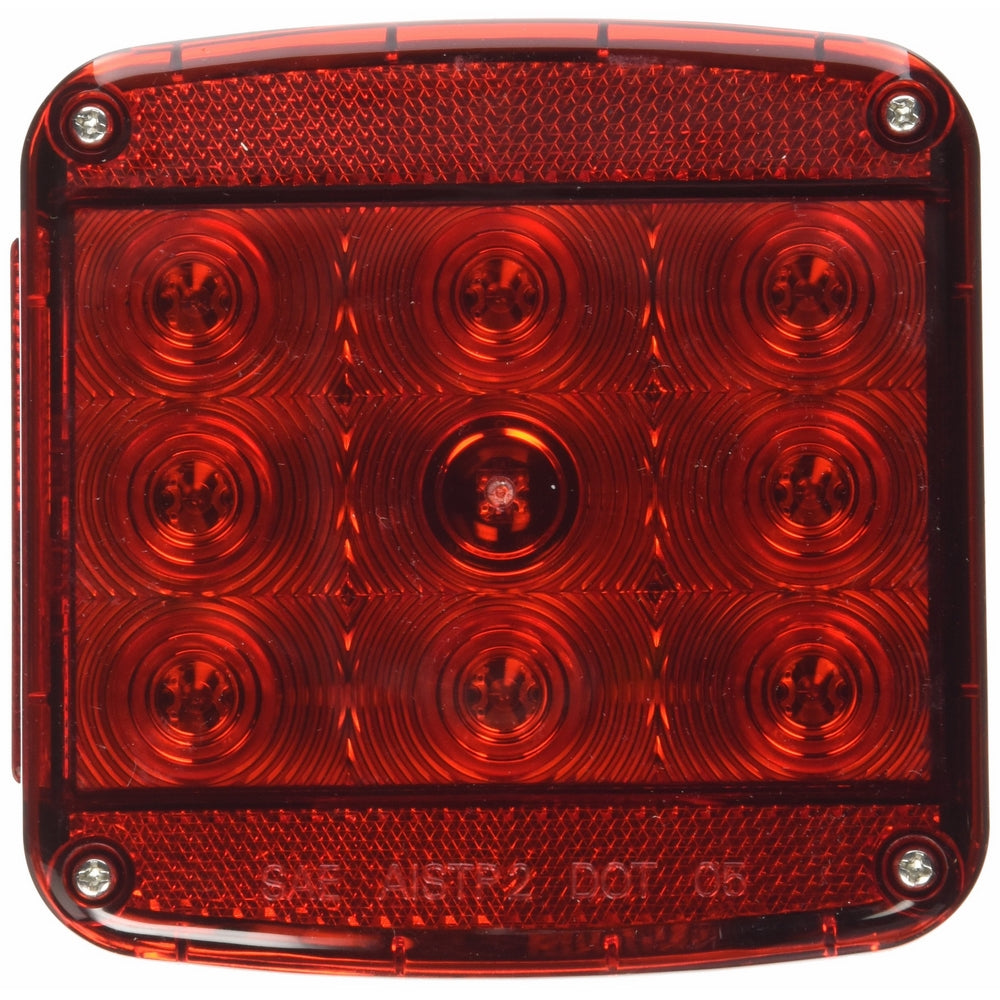 Combination LED stop, turn and tail lightSolid state construction means no bulbs to break or burn outFully sealed, submersible constructionPotted circuitry resists moisture, corrosion, vibrationLower amp draw than incandescent lightsThe Peterson Manufacturing Piranha features a fully sealed, submersible solid state LED light has 100,000-hour life. Efficient LEDs also consume significantly less power than incandescent light and create an intense light that makes vehicle more visible for enhanced safety. Replaces 440-Series incandescent lights. Includes license light. Light Shape: Square, Light Size (in.): 4.76, Light Color: Red, Bulbs Per Light (qty.): 10, Lights Included (qty.): 1