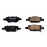 Thermal scorched for fast break-inPositive mold technologyLow dust formulationShims made with dual rubber layers over constrained steel to eliminate noiseProfessional technicians prefer Evolution ceramic pads for problem free installations and no come-backs. Power Stop brake pads are engineered for noise free braking with dual rubber backed shims that offer 6 times more noise reduction than plain steel shims. The pad surfaces are thermal scorched for fast break-in. Evolution pads feature a true ceramic formula that keeps wheels cleaner and won't wear-out the rotors. Power Stop pads have 20 percent more stopping power. The premium carbon-ceramic compound is made using OE positive mold technology, that assures a uniform friction density throughout the pad and this helps control noise and premature wear. Evolution pads are manufactured under TS16949 standards to OEM specifications including chamfers and slots.