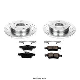 Two rear rotors and rear brake pads includedCeramic pads reduce noise fade and dustComponents are engineered to work togetherOne Click brake kit is everything you needPre-matched components ready to installPower Stop brake kits include a complete set of cross-drilled and slotted rotors and high performance evolution ceramic pads. It is made simple by matching the pads and rotors for a big brake feel without the big price. The Power Stop brake kit offers more pad bite than other leading brands without noise and dust. If you need a fast, easy and affordable solution for better braking, then you need the Power Stop brake kit.