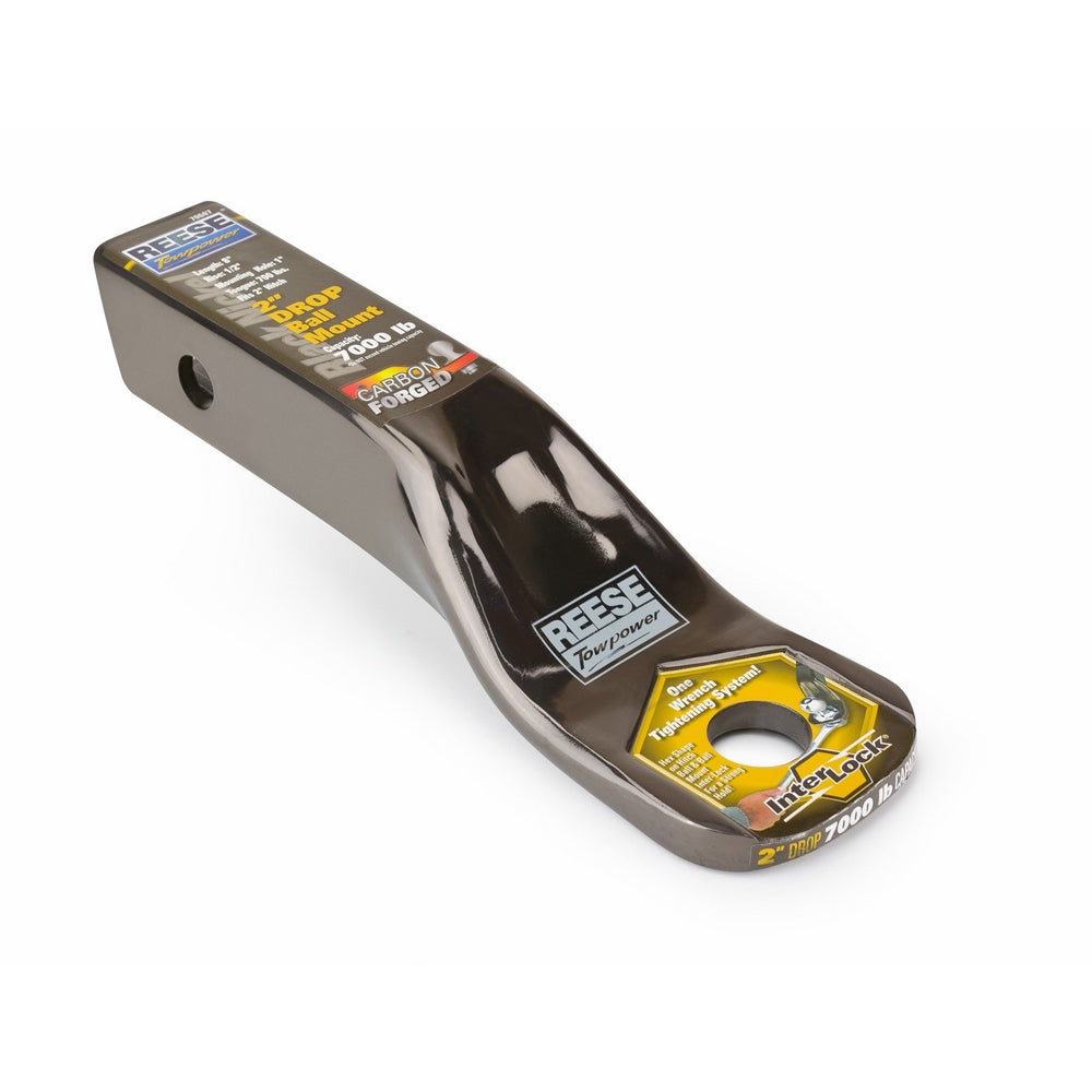 Unique one piece forged design with Interlock hex designFits 2 inch by 2 inch box opening8 inches long with a 1 inch hitch ball hole2 inch drop and 1/2 inch rise7000 pound capacityThe Reese Towpower Black Nickel 2" drop Carbon Forged Interlock ball mount, features a uniquely innovative forged one-piece construction with unequaled quality. It is designed to offer greater towing capacity and performance in a unique weld-free design and attractive, quality finish. The Reese Interlock design is a patented hex design which allows for a one-wrench tightening system when combined with a Reese Interlock hitch ball. It makes for installing the hitch ball more efficient, and prevents marring of the hitch ball.