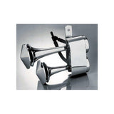 • Waterproof dual-trumpet air horns give a loud warning blast of 128 dB. Trumpets, mounts and brackets are triple-plated chrome or powder coated black. Includes horn assembly, air compressor, relay, simple wiring, cone shaped dust/bug covers, mounting hardware and complete installation instructions. Air horns mount to the frame down tubes or engine guards; air compressor mounts to the frame behind a side cover or under tank. Uses the stock horn button; bolt-on, plug-in installation.