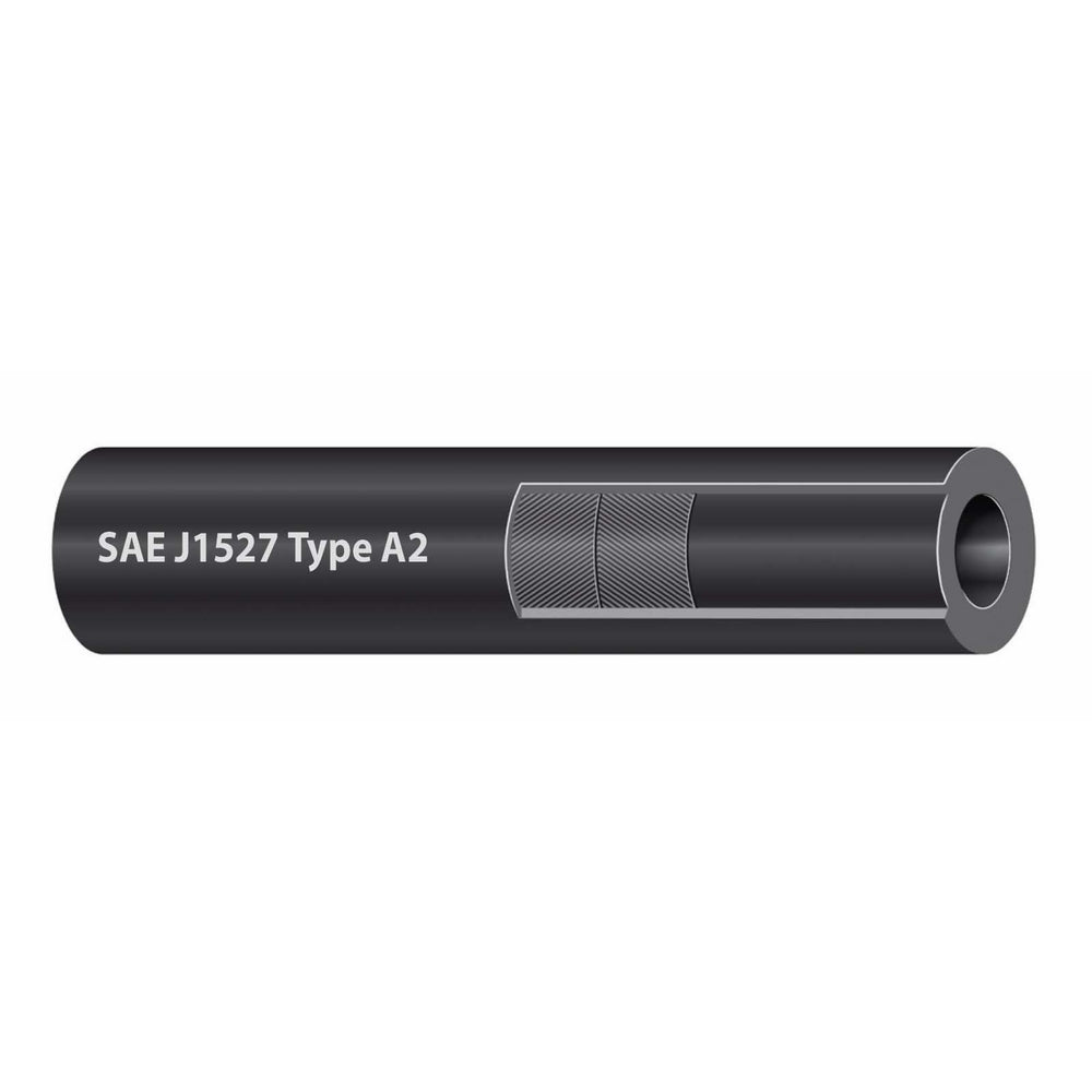 Shields Fire-Acol Fuel Vent hose resists gasoline/alcohol blended fuel and is fire resistant. It features a weather/UV resistant NBR/PVC cover. This hose is primarily used for fuel vent lines (gasoline up to 85% ethanol blended fuels/diesel fuels). It meats USCG Type A2 requirements for pleasure boats and meets SAE J1527 Type A2, ISO 7840 Type A2 and NMMA/CE Type accepted standards. The temperature ranges from -20°F to 160°F. ID: 5/8" (15.9mm) OD: .96" (50 mm) Max WP: 2 Wt. C: 25