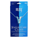The Blitz jewelry care cloth is an 11 by 14 inch, two ply cloth made from 100 percent soft cotton flannel, folded and sewn. The white interior is thoroughly treated with the finest cleaning and polishing agents with tarnish inhibitors to clean, shine and protect gold, silver and platinum. The jewelry is left shining like new. Non-Toxic.