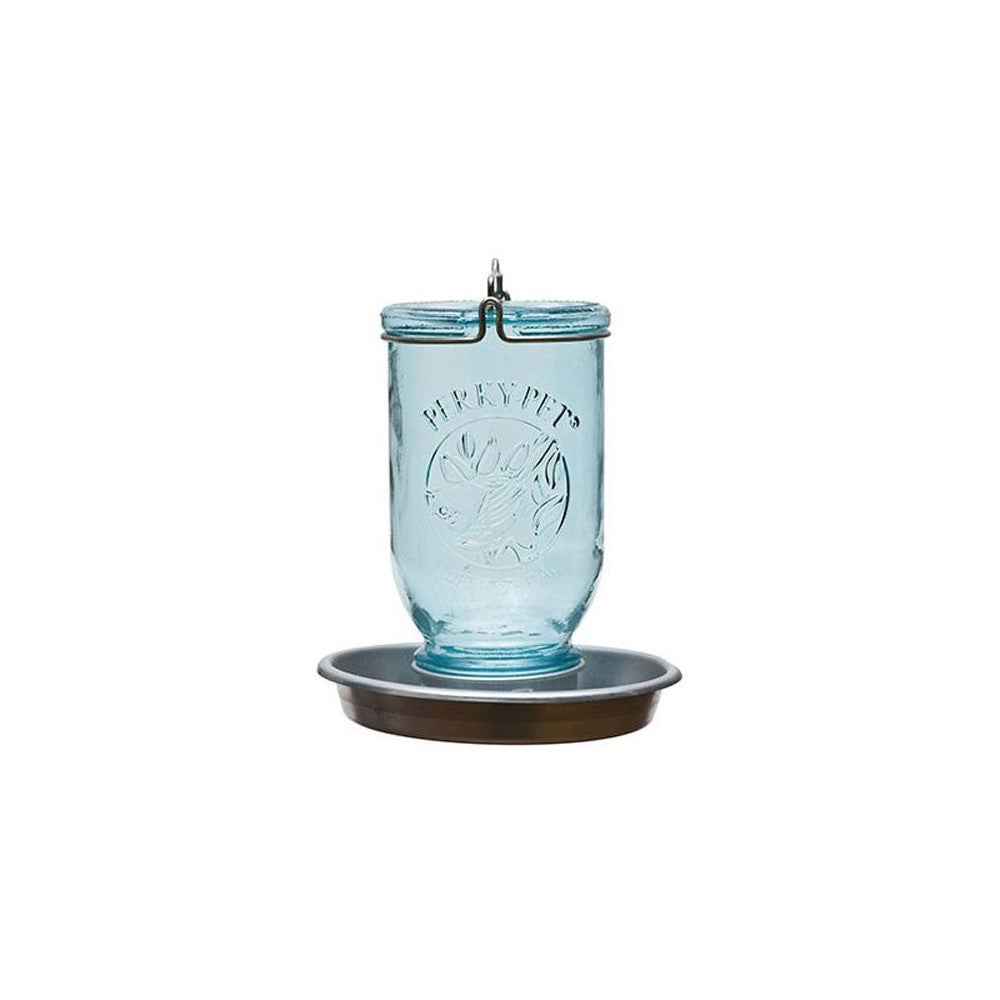 The Perky-Pet Mason Jar Wild Bird Waterer offers fresh, clean water to attract a larger variety of birds while adding a rustic look to any bird lovers yard. The blue color of this bottle is reminiscent of vintage blue glass canning jars used in the 1800's. The waterer is a simple to fill and clean, just unscrew the bottle from the base, fill with water and screw the base back into place - it's that easy. If you want to attract more birds to your yard then the Perky-Pet Wild Bird Waterer is for you.