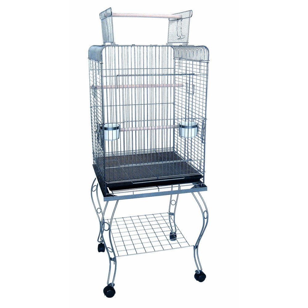 20x20" Brand New Sequre Top For Small Parrot Or Cockatials Medium Bird Cage With 5/8" Bar Spacing And Stand In Antique Silver - Open Top