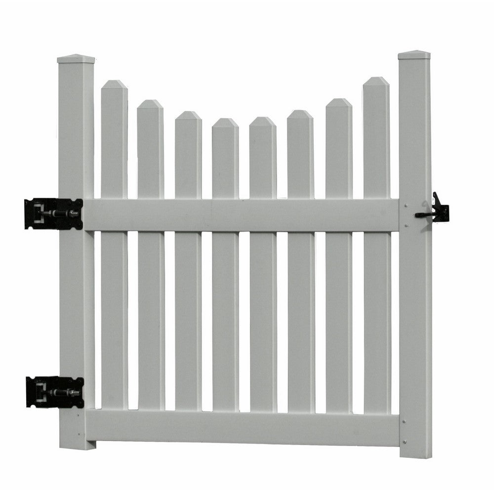 • An easy way to give your arbor a little extra character, and to create a welcoming sight for visitors, the New England Arbors 4-ft. Large Cottage Picket Vinyl Arbor Gate is an excellent choice. First of all, it's constructed of crisp, white vinyl that's maintenance-free and weather-proof. Imagine an outdoor accessory you never have to sand, paint or stain. It features quality stainless steel, black powder-coated hinges and latch, and all you'll need to attach it is a ratchet, tape measure and drill. Detailed instructions are included to make the job easier. About New England Arbors The world's leading manufacturer of premium vinyl arbor kits, New England Arbors was founded in a simple barn in the late 1990's. There the founders began replicating the beauty of New England design with simple, low-maintenance vinyl materials. The business has grown since then, now supplying arbors and trellises all over America and beyond. With headquarters in Port Huron, Mich., and Sarnia, Ontario in Canada, New England Arbors is dedicated to the creation of the most attractive and durable vinyl arbors possible. Additional limited-time savings reflected in current price. Maintenance-free, weather-proof vinyl. Never sand, paint or stain. Crisp, clean white finish. Easy assembly with minor tools. Measures: 48W x 43.5H inches. Post size: 2 x 3.5 inches.