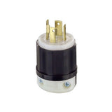 Leviton locking plug, heavy duty, twist-lock, 3 poles, 4 wires, 14 - 8 AWG wire, 30 a, 125/250 V, NEMA L14-30P, cord mounting, Grounding Grounding, nylon, Black/White, for industrial applications. This product is manufactured in United States.