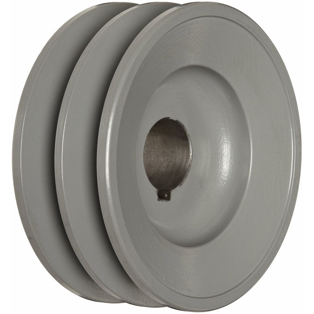 • This TB Woods bored-to-size V-belt sheave with a B belt section is made of cast iron and comes with two grooves. It is a classical V-belt sheave that fits a variety of widely available, classical profile V-belts suitable for use in many existing power transmission drives. This pulley is made of cast iron for resistance to wear, corrosion, and galling. It has a B cross section and two grooves for use with multiple or banded belts. V-belt pulleys (sheaves) are used in a wide range of mechanical and electronic drives, including HVAC units, farm machinery, food processing equipment, and home appliances, among others.