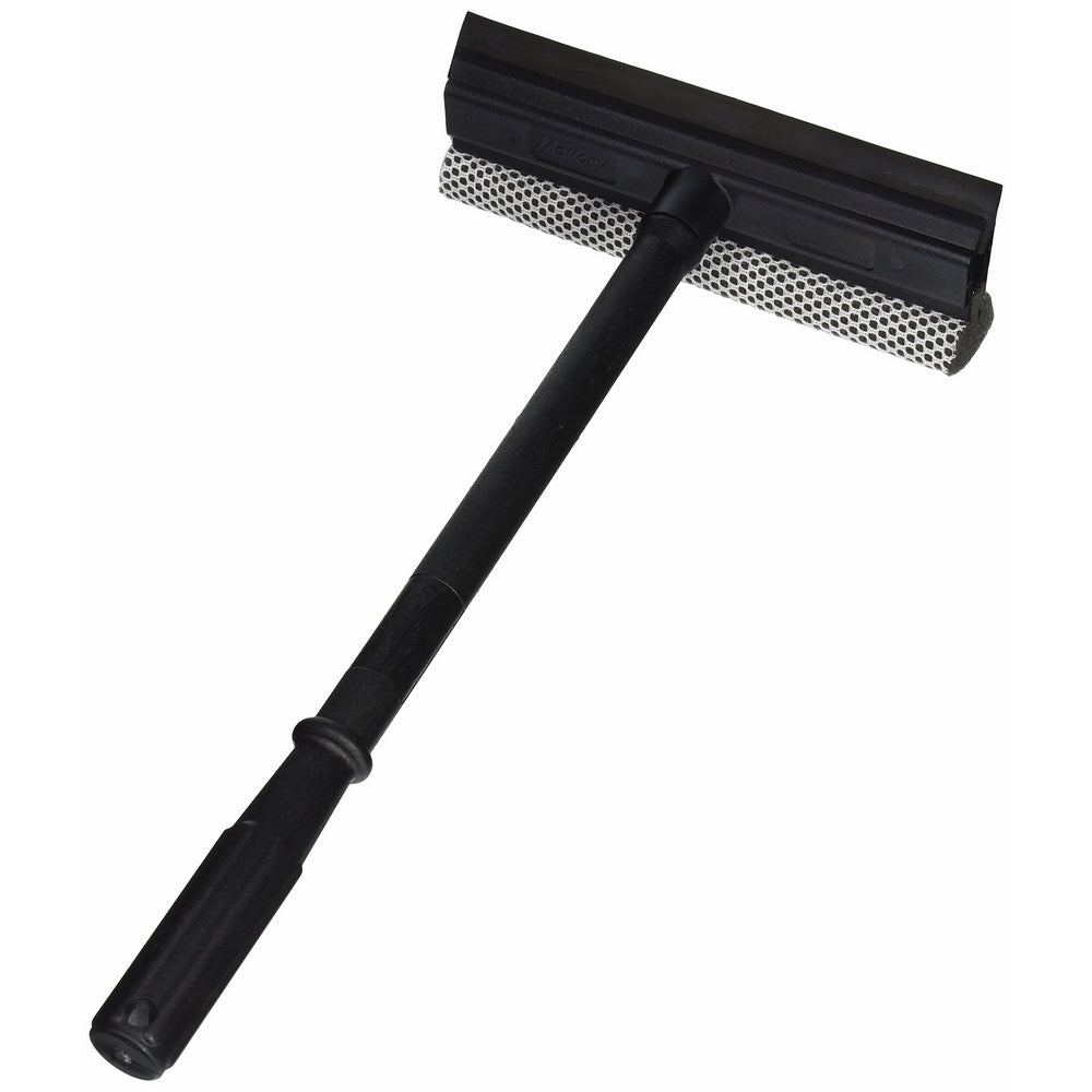 Wide soft rubber bladeNylon netted bug sponge' Window Washer and Squeegee, Black, Blade Length 8 In., Blade Height 1/2 In., Squeegee Blade Count Single, Blade Style Straight, Blade Material Rubber, Handle Length 15 In., Handle Material Plastic, Connection Type Threaded, Chemical Resistant Yes, Application Glass, Includes Scrubbing Sponge and Squeegee Blade '