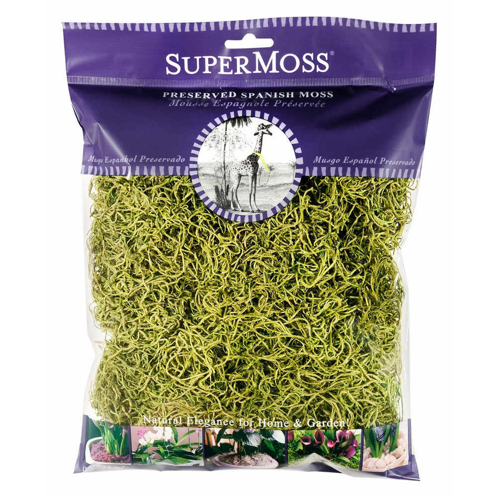 SuperMoss Preserved Spanish Moss is a company staple. It grows in a swirly, spaghetti-like fashion and makes for an excellent touch to floral displays, creative projects and your garden. Our product is responsibly procured and comes in its natural color as well as a variety of enhanced colors to match your home decor. Our product is durable and reliable to provide long-lasting beauty. It is ideal for covering soil or dressing container plants, bulbs & orchids. Spanish Moss is also a great natural fill for gift baskets. Available in SuperMoss packaging or in bulk quantities. Cleaned before packaging to remove small particles.