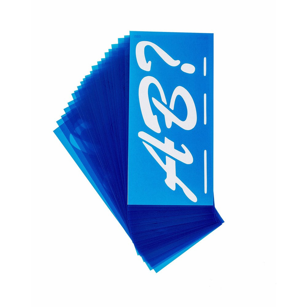 Reusable plastic stencilsGreat for indoor & outdoor useContains A-Z, a-z, 0-9 & various punctuation symbolsSmooth die cut edge provide sharp outline tracingClear plastic stencil guide allow you to see your work surface making alignment easy
