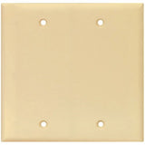 Molded from non-flammable Polycarbonate. Virtually unbreakable, with high structural rigidity, long-term form retention and superior impact and abrasion resistance. Screw-catch feature holds mounting screws captive and simplifies installation. Matching screws provided. High gloss finish is soil resistant. Mid-size - 4.875" x 4.938". WALL PLATES Color=Ivory 2-GANG BLANK POLYCARBONATE