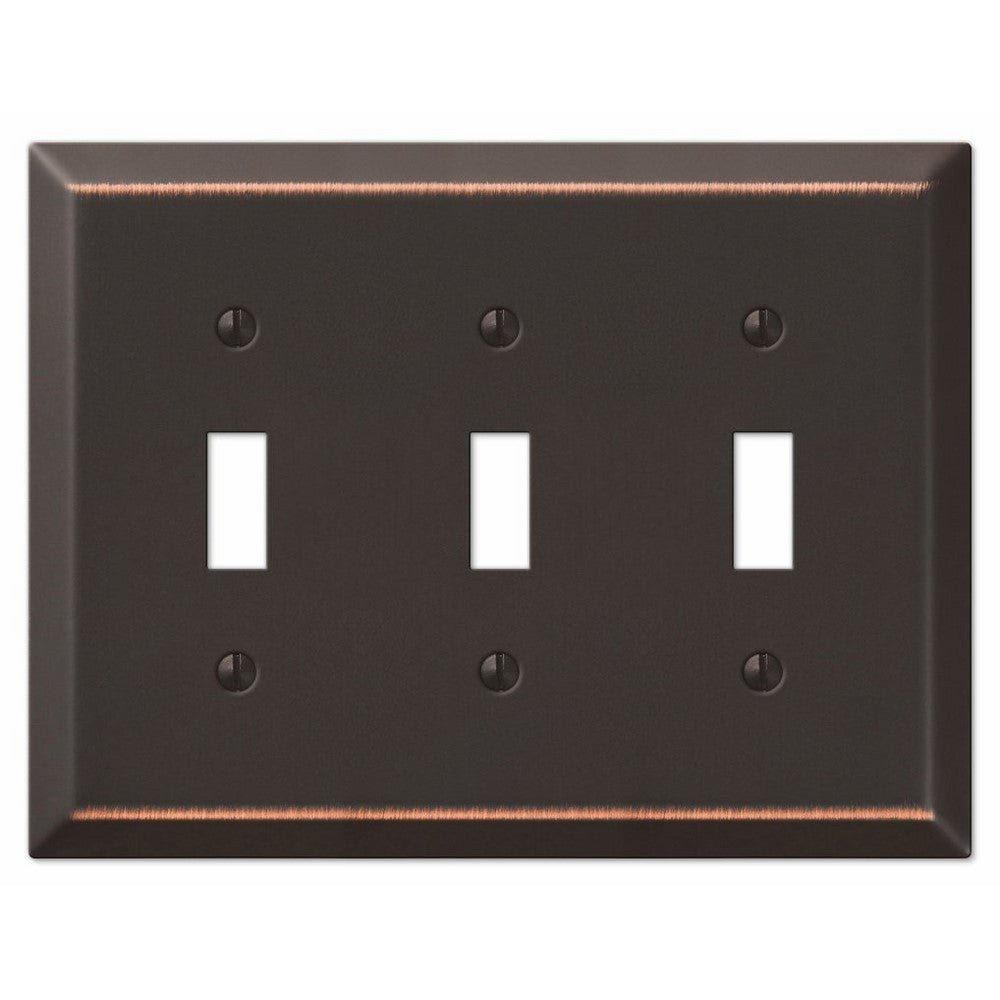 Amerelle 163TTTDB Traditional Steel Wallplate with 3 Toggle, Aged Bronze