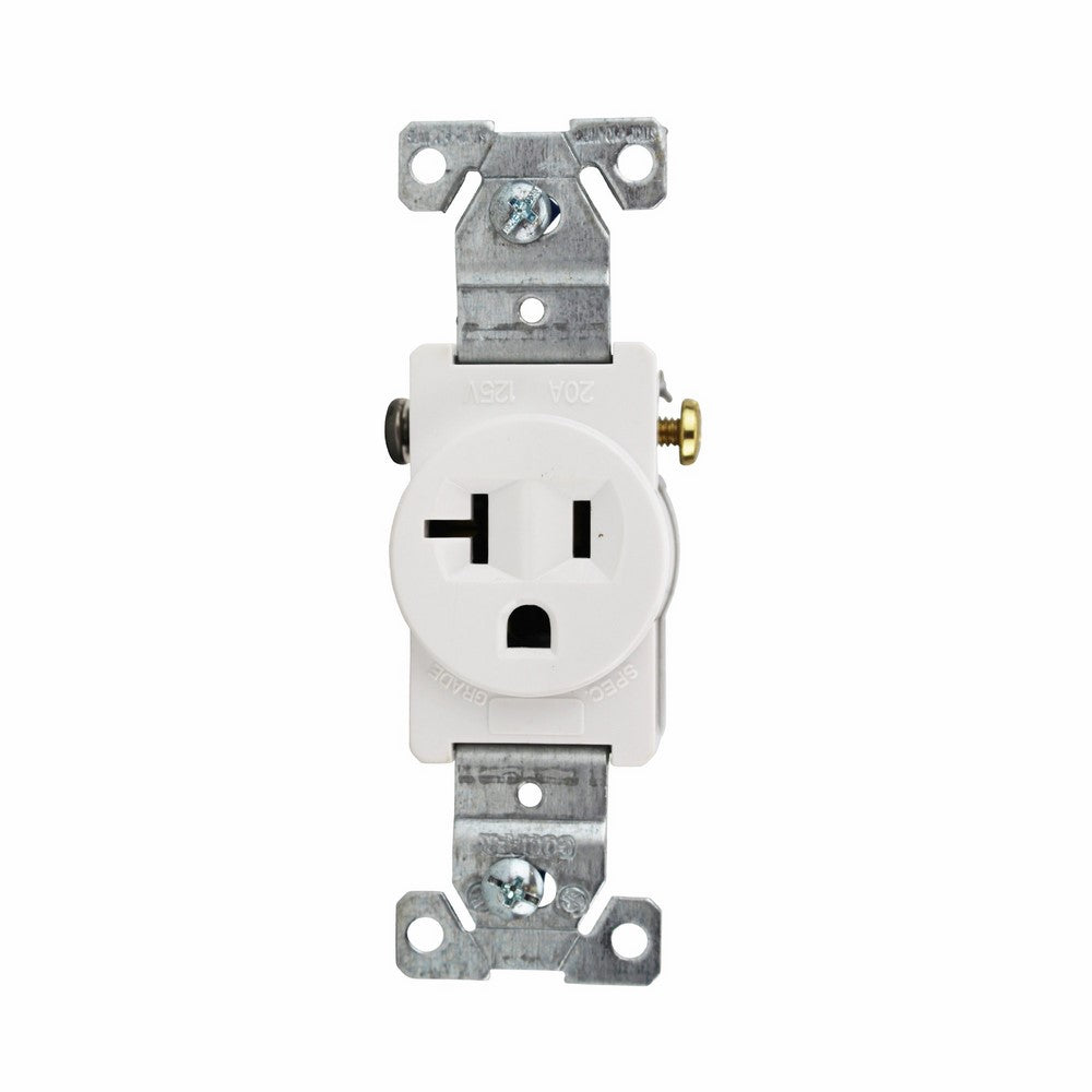 20A, 125V2-Pole, 3-Wire GroundingSide WiringSingle Receptacles10 Pack20 Amp, 125 Volt, NEMA 5-20R, 2P, 3W, Compact Single Receptacle, Straight Blade, Commercial Specification Grade, Grounding, Side Wired, Steel Strap - White.Brand: Cooper, Model: BHBUSAZIN026258, Color: White