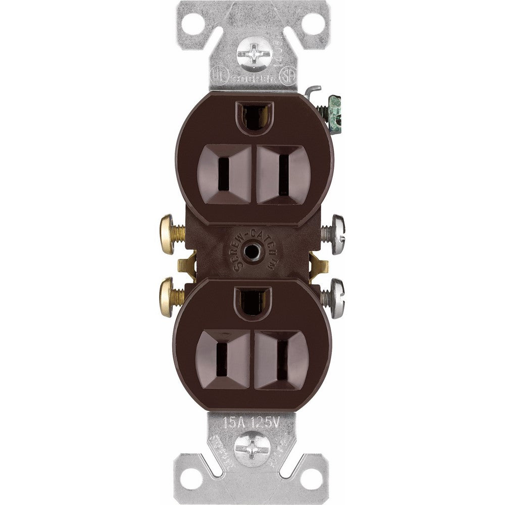 Standard grade straight blade duplex receptacles feature longer, wider straps providing 40-percent more contact area to wall board. Virtually eliminates floating installations. Patented built-in wire stripper for No.14 and No.12 wire to speed installation. Patented built-in wire looper for pre-looping. Tri-combo screws accept slotted, Phillips and robertson-head tools for installation flexibility. Terminal screws backed out ready for wiring. Side wire terminals accept up to No.10 solid or stranded wire and push-in terminals accept No.14 solid wire. 2-Pole/3-wire grounding, 15-amp, 125-volt, 5-15-NEMA rating. Listed to UL498, file no. E15058, CSA certified to C22.2, no. 42, NOM certified. NAFTA compliant. Available in brown color. Measures 2/3-Inch length by 1-1/3-Inch width by 4-1/5-Inch height. Whether a homeâ€s style is traditional, modern, casual, cozy or rustic, it will demand more from wiring devices than in years past. Eaton is dedicated to providing the up-to-date wiring device solutions; solutions that increase energy efficiency, increase productivity, promote safety at work and in the home, and produce reliable performance. Eaton is a trusted name in electrical products for over 175-years.