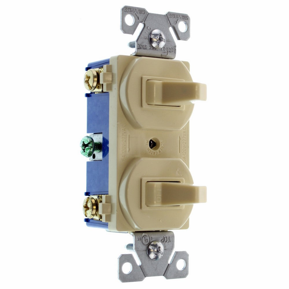 Rated for 15-amps and 120/277-volts, single pole switch for switching one light from one location, 3-Way for switching 1 light from two locationConvenient patented built in wire stripper speeds installationAutomatic grounding systemTri-Combo screw heads offer greater installation flexibilityComes in an ivory finish and has a 10-year limited warranty