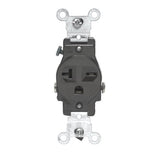 • Leviton 105-5821 Commercial Grade Straight Blade Single Receptacle, BrownLeviton 105-5821 Commercial Grade Straight Blade Single Receptacle, Brown Features: Grounding Amperage: 20 Amp Voltage: 250 Volt Pole: 2 Wire: 3 Brown Commercial grade Narrow body single receptacle Straight blade Side wired Nylon face and body material Steel strap material NEMA 6-20R Plug (1064-4912) UL and CSA Standards and Certifications