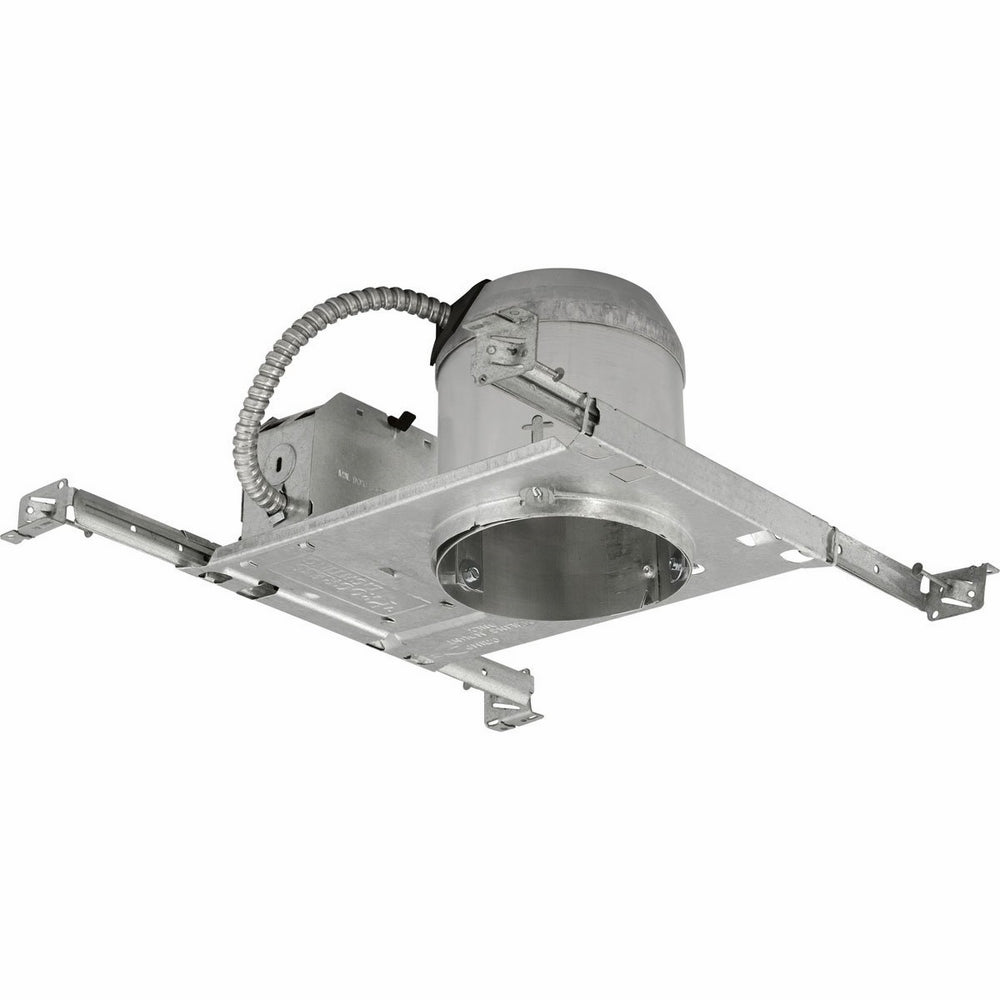 • Progress Lighting P84-AT 5" Shallow IC/Non-IC housing. No Finish 5 In. New Construction Recessed Housing, Air Tight, IC This recessed housing has several great installation features plus an Air-Tight rating. Most brands charge up to three times more for this feature - but it is our standard. An Air-Tight housing is designed to prevent air from the interior of your home escaping into the attic. On average, an Air-Tight fixture will save $5 per year compared to a standard fixture. Considering that your home may have 10 or more recessed lights, that's $50/year! For use in new construction or accessible ceilings. Meets Washington State Energy Code requirements (when used with P8584-01 gasket). UL and CUL listed for damp locations and through wiring. Rated for use in direct contact with insulation (IC) - can be installed in ceilings from 1/2 in. to 2-1/2 in. thick Adjustable hanger bars with nail grip for up to 24 in. spans with integral T-bar clamp Shallow design for use in 2x6 construction typically found in 2-story homes. Rated for 8 #12 90-deg conductors (4 in and 4 out) Select recessed housing and trim for complete fixture. Medium base lamp socket 7-7/8 In. Width x 10-3/4 In. Height, 5-1/4 in. ceiling opening