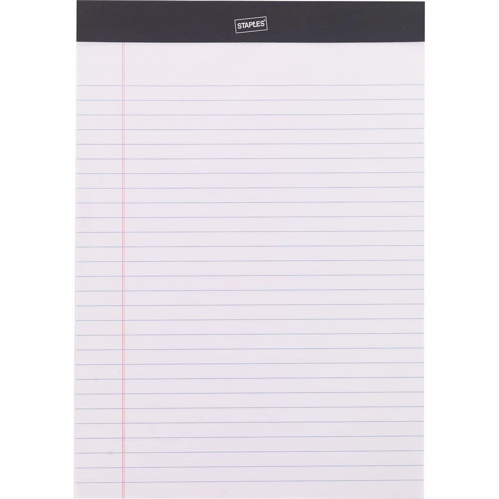 Staples Perforated Notepad, Wide Ruled, White, 8-1/2" x 11-3/4", 12/Pack