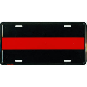 Thin Red Line Metal License Plate – 6x12 inch Black and Red America Auto Tag for Cars and Trucks – Recognize and Support the Courage of Firefighters, Fireman