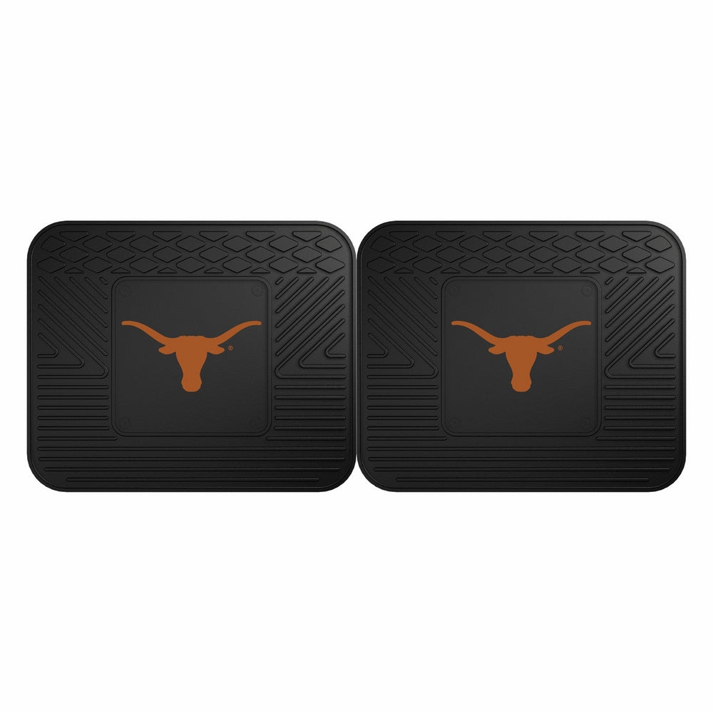 Boast your team colors with backseat utility mats by FANMATS. High quality and durable rubber construction with your favorite team's logo permanently molded in the center. Non-skid backing ensures a rugged and safe product. Due to its versatile design utility mats can be used as automotive rear floor mats for cars, trucks, and SUVs, door mats, or workbench mats. Now comes in a 2 Pack.